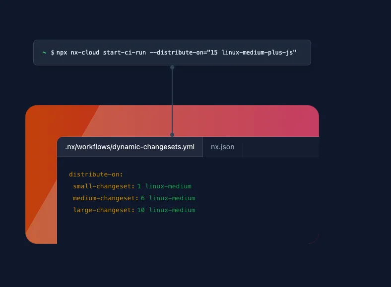 Nx already knows how your repository is structured and the best way to run tasks locally. Nx can use that exact same knowledge to run tasks in the best way on multiple machines in CI.