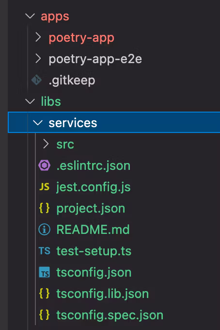 Now you should notice that under the apps folder, there are 2 folders generated: peotry-app and poetry-app-e2e: