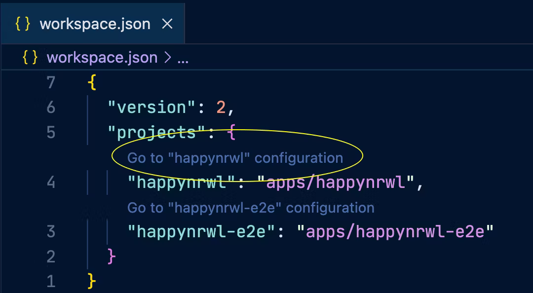 Here's the project.json for our happynrwl React application. I clipped out the non-relevant parts here: